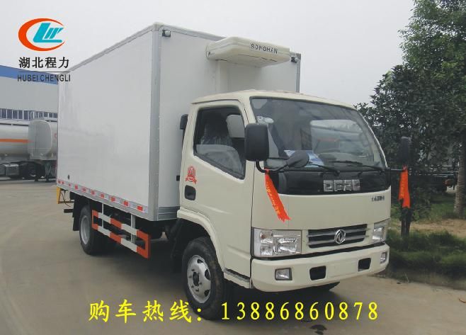 東風(fēng)多利卡冷藏車: YC4E140-33,232加架,前橋3T后橋7T,8.25-20胎排半可翻24V方向助力斷氣剎離合器助力ISDe14030共軌,駕駛室單排可翻24v電源輪胎8.25R16鋼絲胎動力轉(zhuǎn)向斷氣剎離合器助力,廂長5750*2150*2250